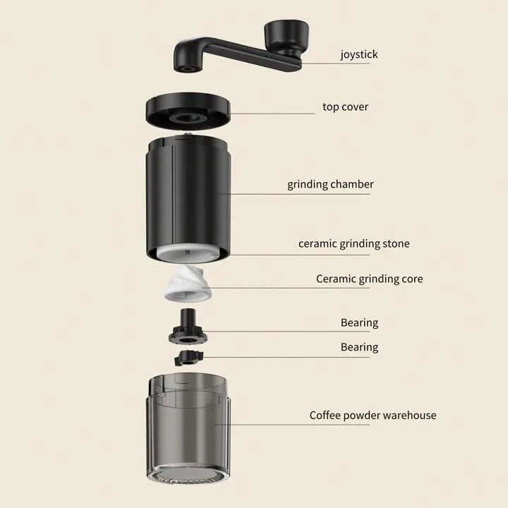 - Bærbar og Praktisk: Kaffemøllens kompakte design gør den nem at tage med på farten. Den vejer kun lidt og fylder minimalt, hvilket gør den perfekt til camping, rejser eller blot til hverdagsbrug derhjemme.